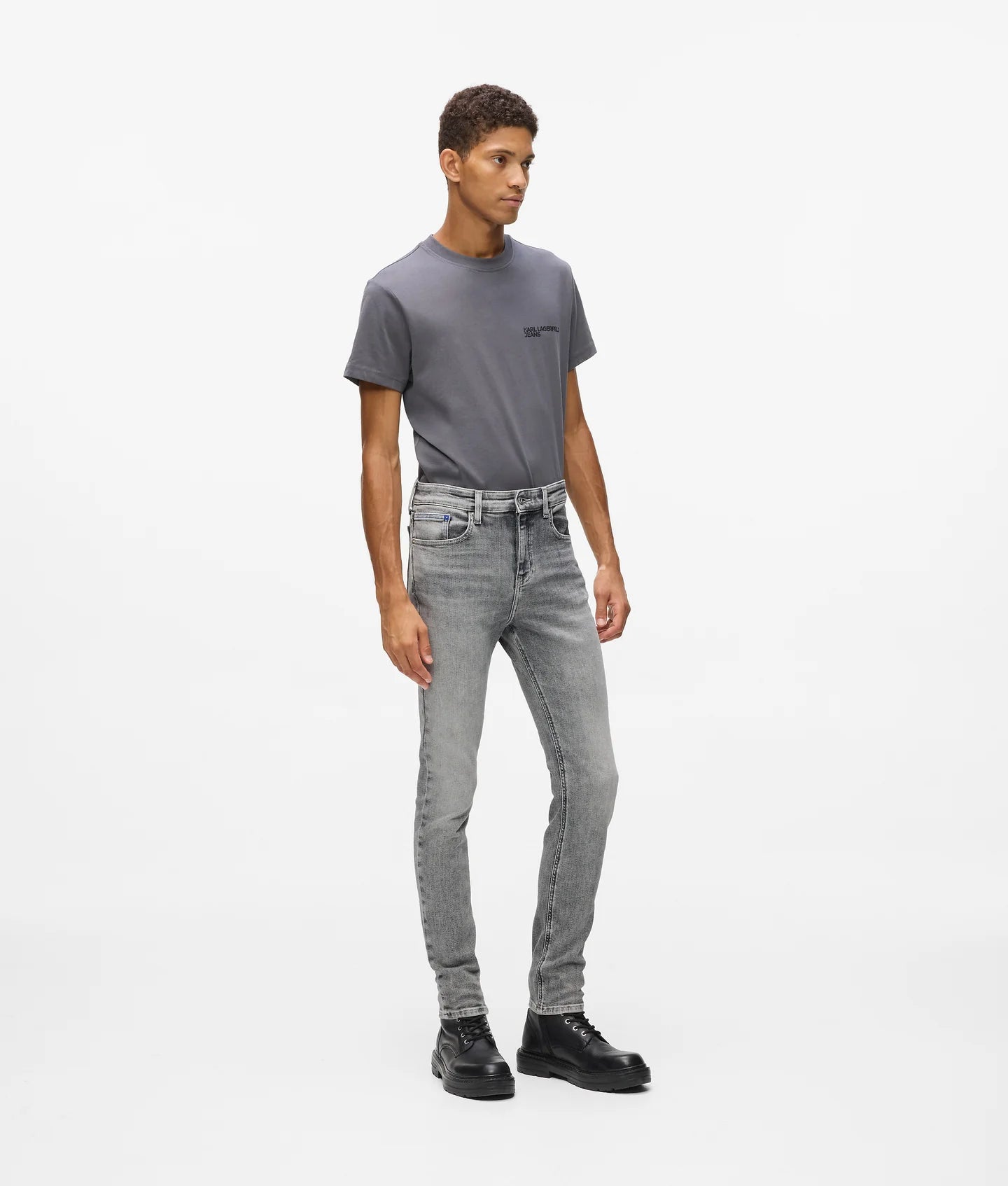 Signature KARL LAGERFELD JEANS details refine the design, including a branded shank button at the fly closure, a leather logo patch at the back waistband, and the iconic blue K-initial embroidery at the back right pocket corner. Precision-crafted and endlessly versatile, this pair is a confident foundation for modern, streamlined looks.