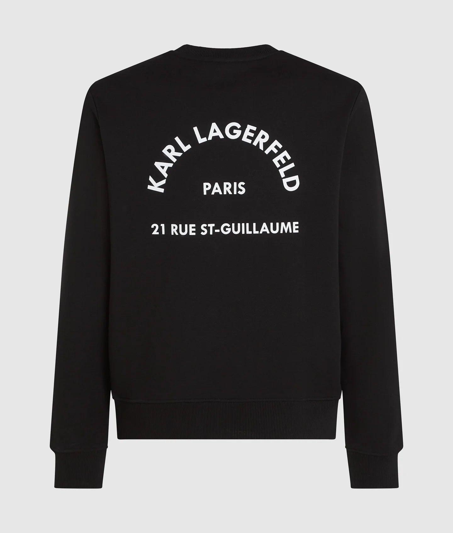 Crafted from 100% organic cotton jersey, this sweatshirt delivers a soft, breathable feel with lasting quality. A timeless crew neckline and light ribbing at the collar, cuffs, and hem provide structure while maintaining comfort. Subtle logo detailing at the chest adds a minimalist touch, contrasted by bold Rue St-Guillaume artwork across the back—a statement nod to KARL LAGERFELD’s Parisian heritage.