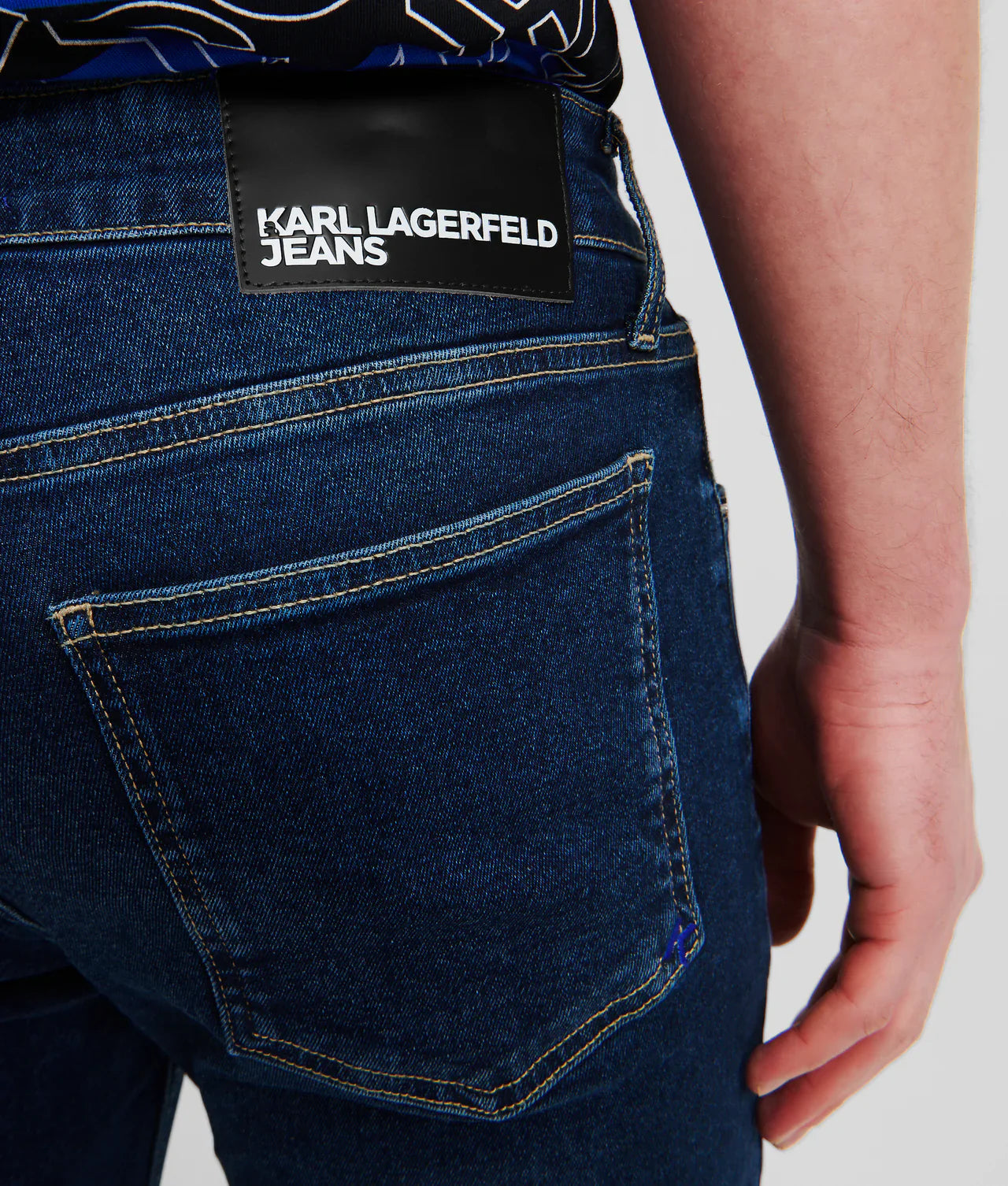Every detail highlights the brand’s modern aesthetic. A branded shank button and zip-fly fastening offer secure closure, while the KARL LAGERFELD JEANS leather patch at the back waistband adds iconic style. Completing the design, K-initial embroidery on both the back pocket and coin pocket introduces subtle yet unmistakable signature branding.