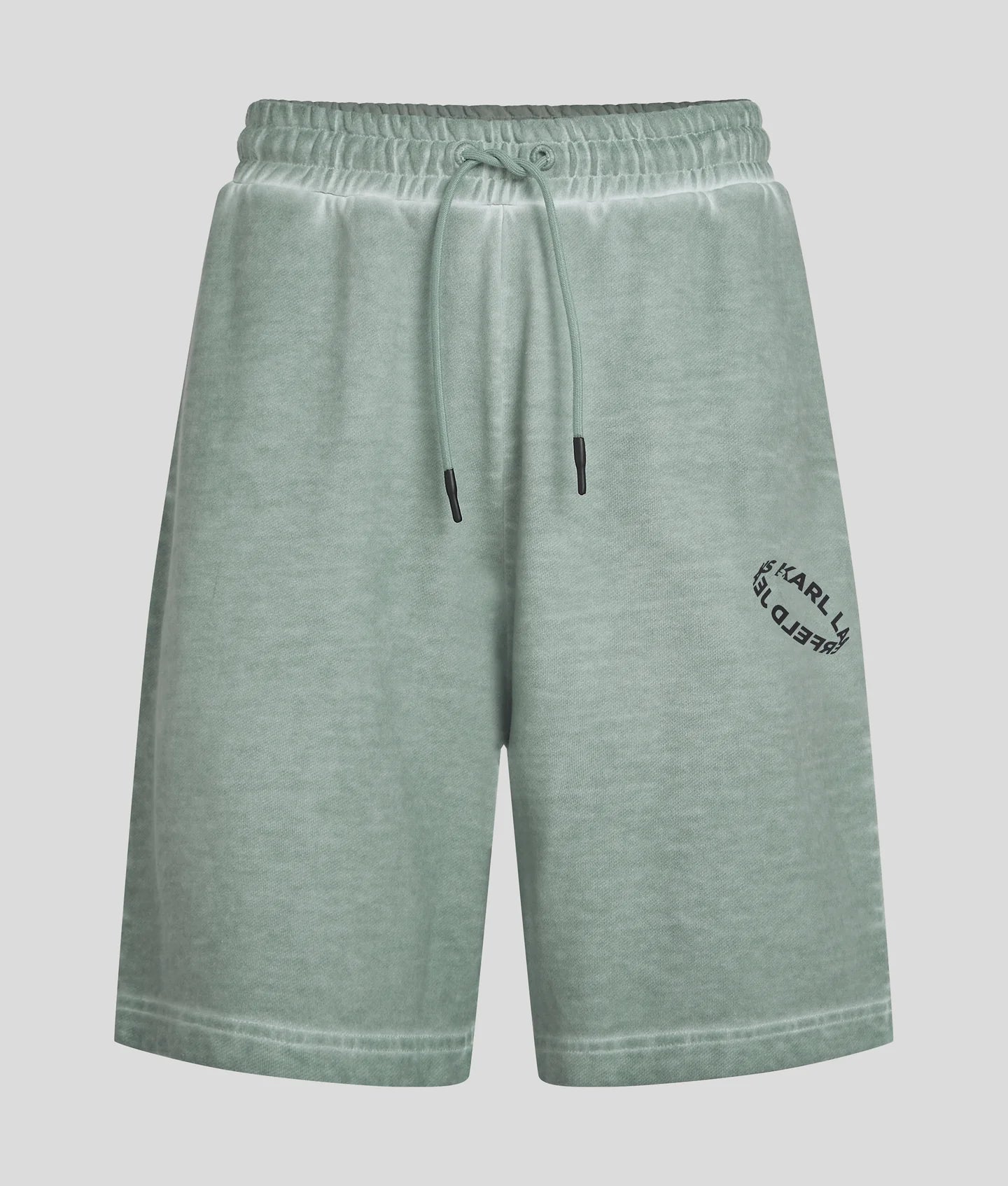 The elasticated waistband with drawcords offers a fully adjustable fit for all-day ease, and the practical side pockets and back patch pocket provide functional storage for essentials. Signature branding is expressed through the ring-shaped KARL LAGERFELD JEANS logo on the left leg, giving these sweatshorts a distinctive, street-ready appeal.