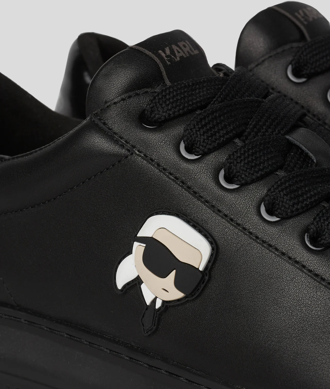 The design features a classic lace-up silhouette, providing a secure, customized fit, while the contrasting heel counter adds a striking visual break that instantly catches the eye. This detail is complemented by the exclusive IKON Karl artwork at the side—a bold, contemporary emblem inspired by digital-era aesthetics, giving the sneaker its unique, fashion-forward character.