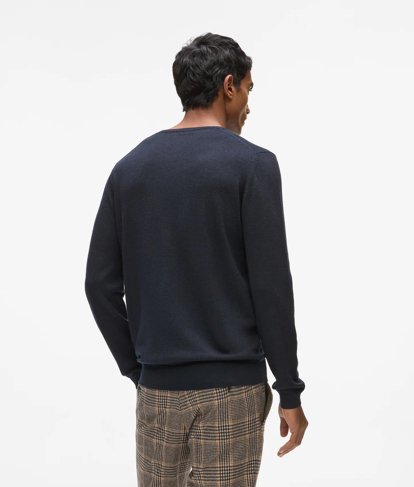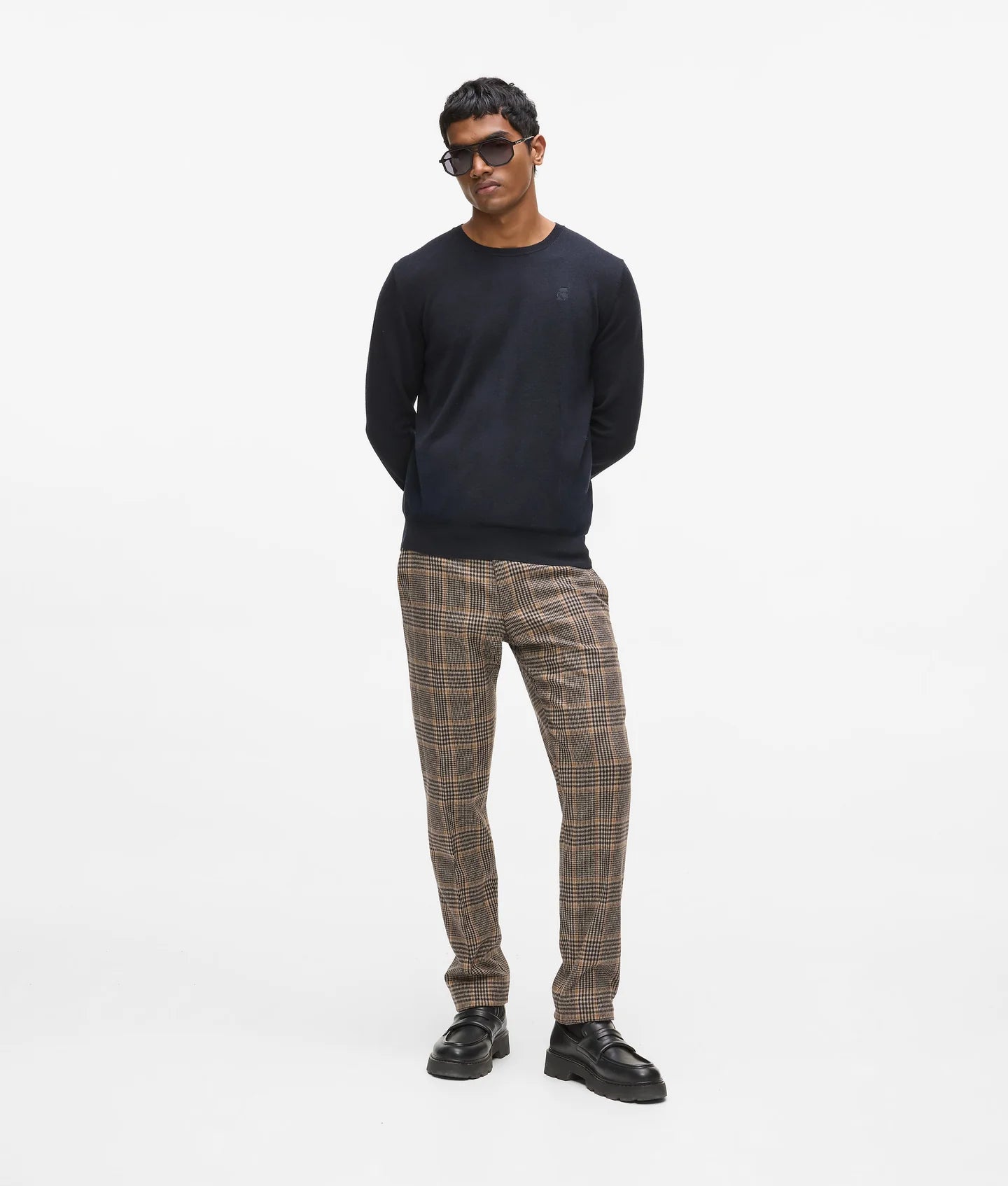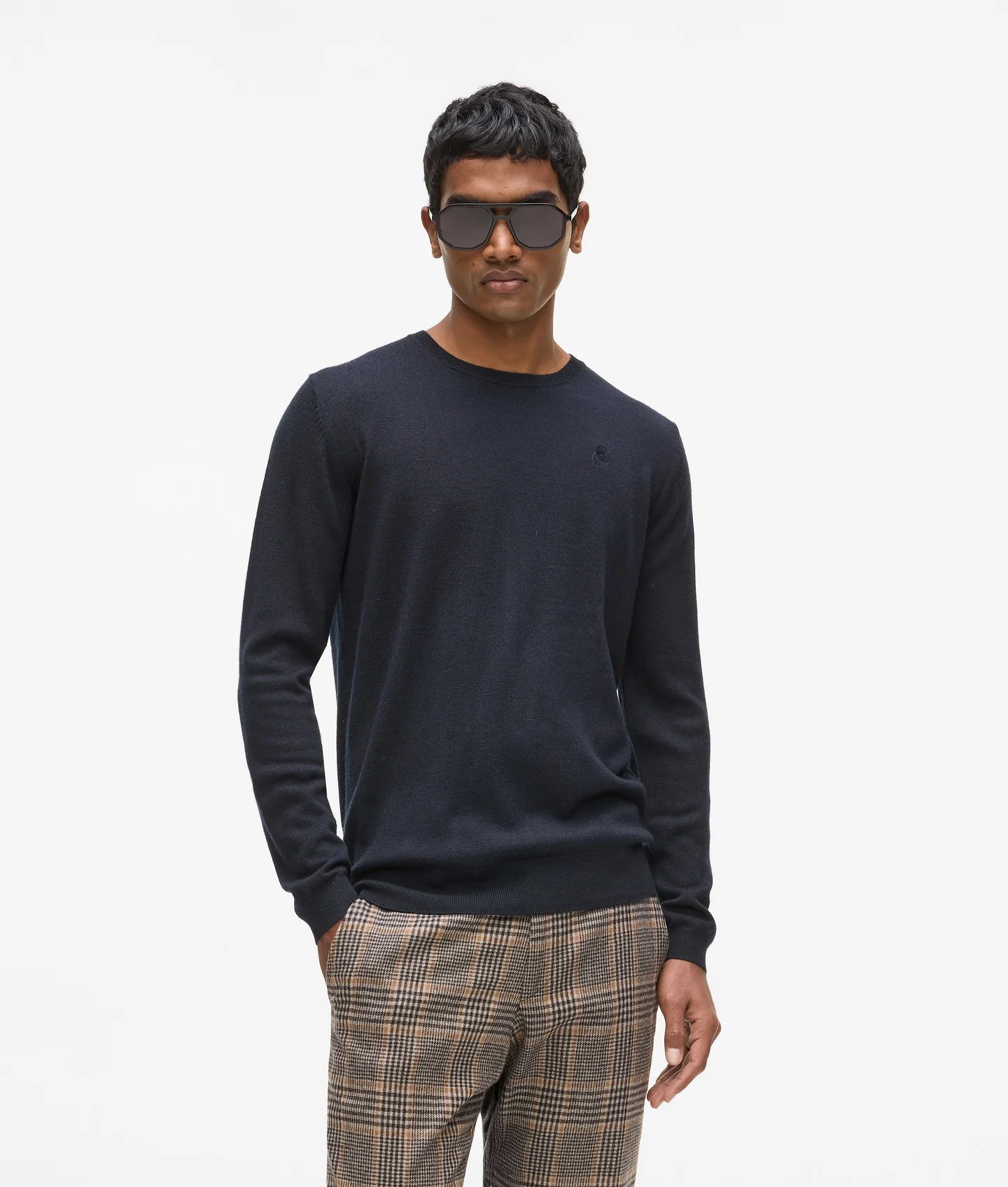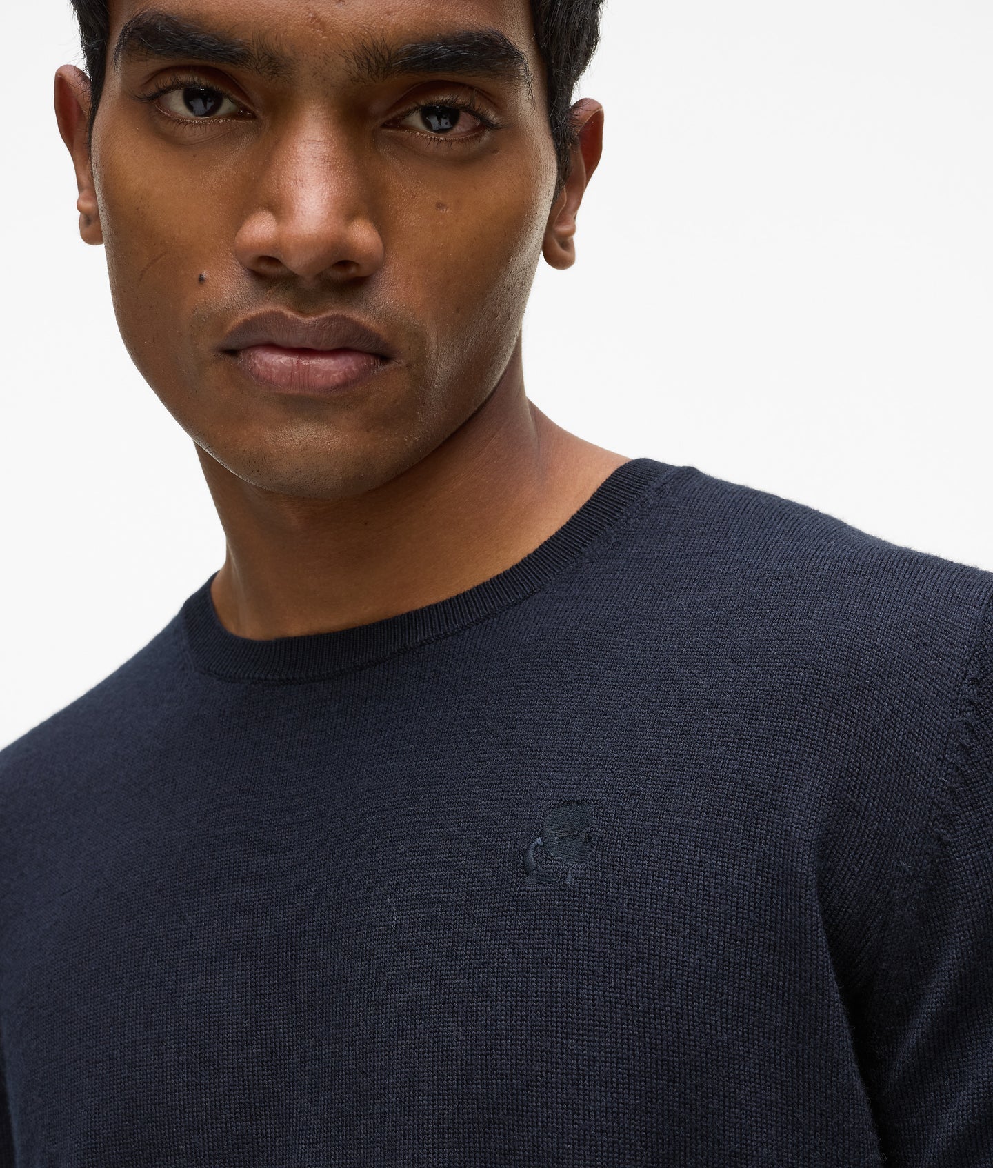 The classic crew-neck silhouette is complemented by rib-knit trims at the neckline, sleeve cuffs, and hem, providing structure and a flattering fit while ensuring the sweater retains its shape over time. A tonal, embroidered Kameo motif at the left chest introduces a subtle yet sophisticated branding detail, infusing the piece with quiet luxury without compromising its minimalist aesthetic.
