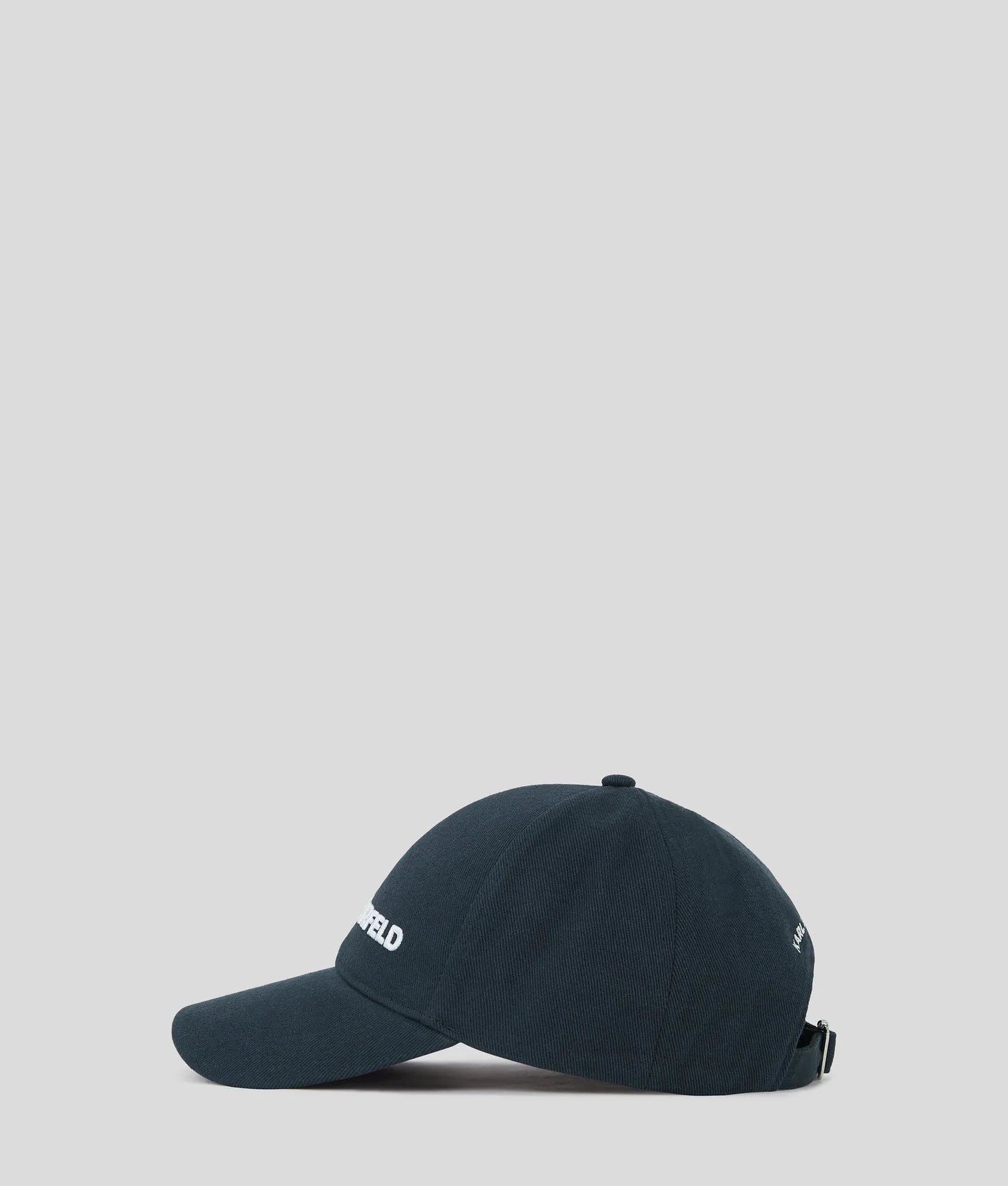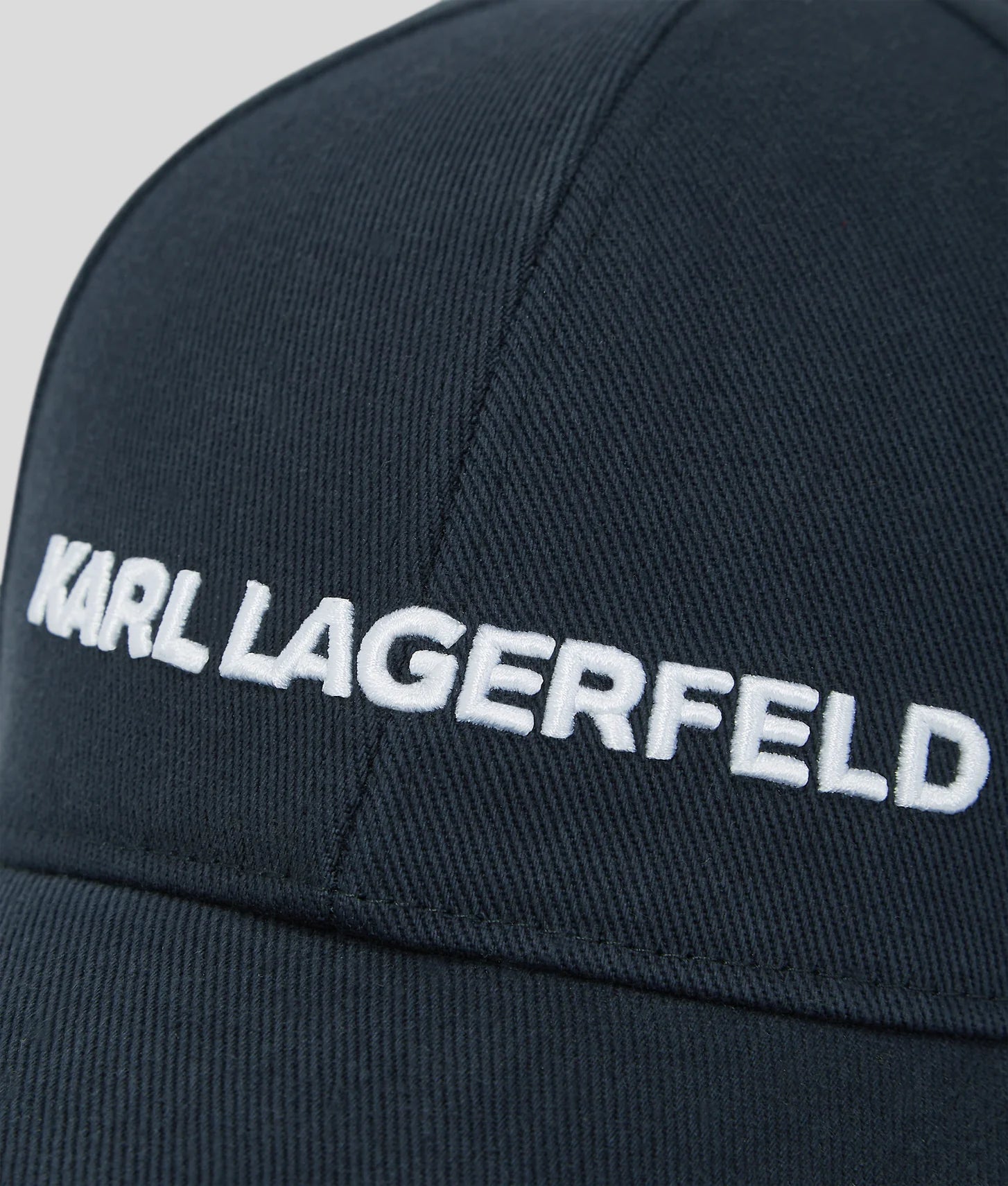 At the front, a contrasting KARL LAGERFELD logo adds a bold yet minimal statement, elevating the cap with unmistakable designer appeal. Crafted from a woven cotton blend that includes recycled cotton, this piece reflects a more responsible approach to fashion without compromising on quality, durability, or style.
