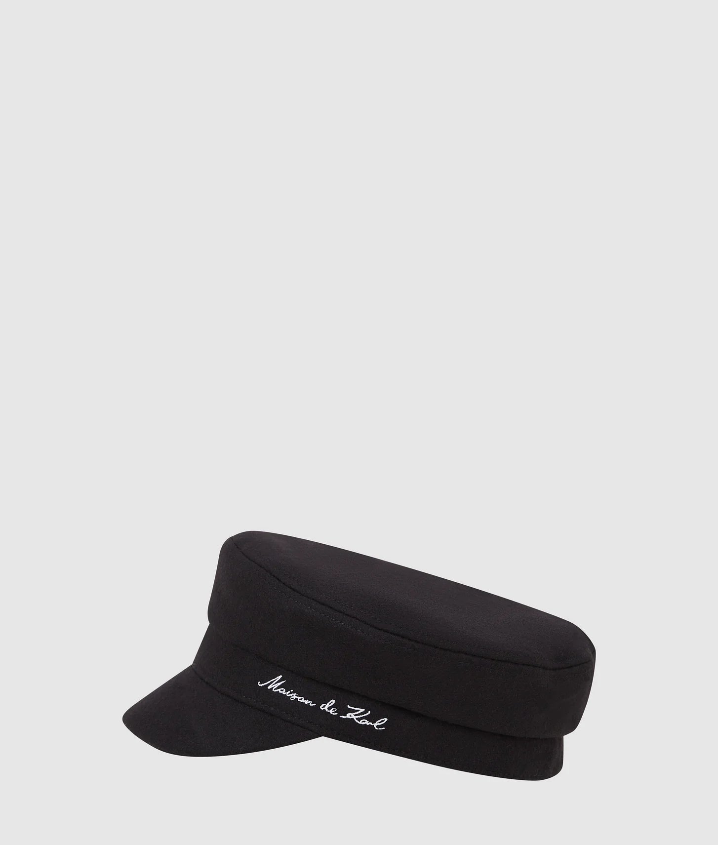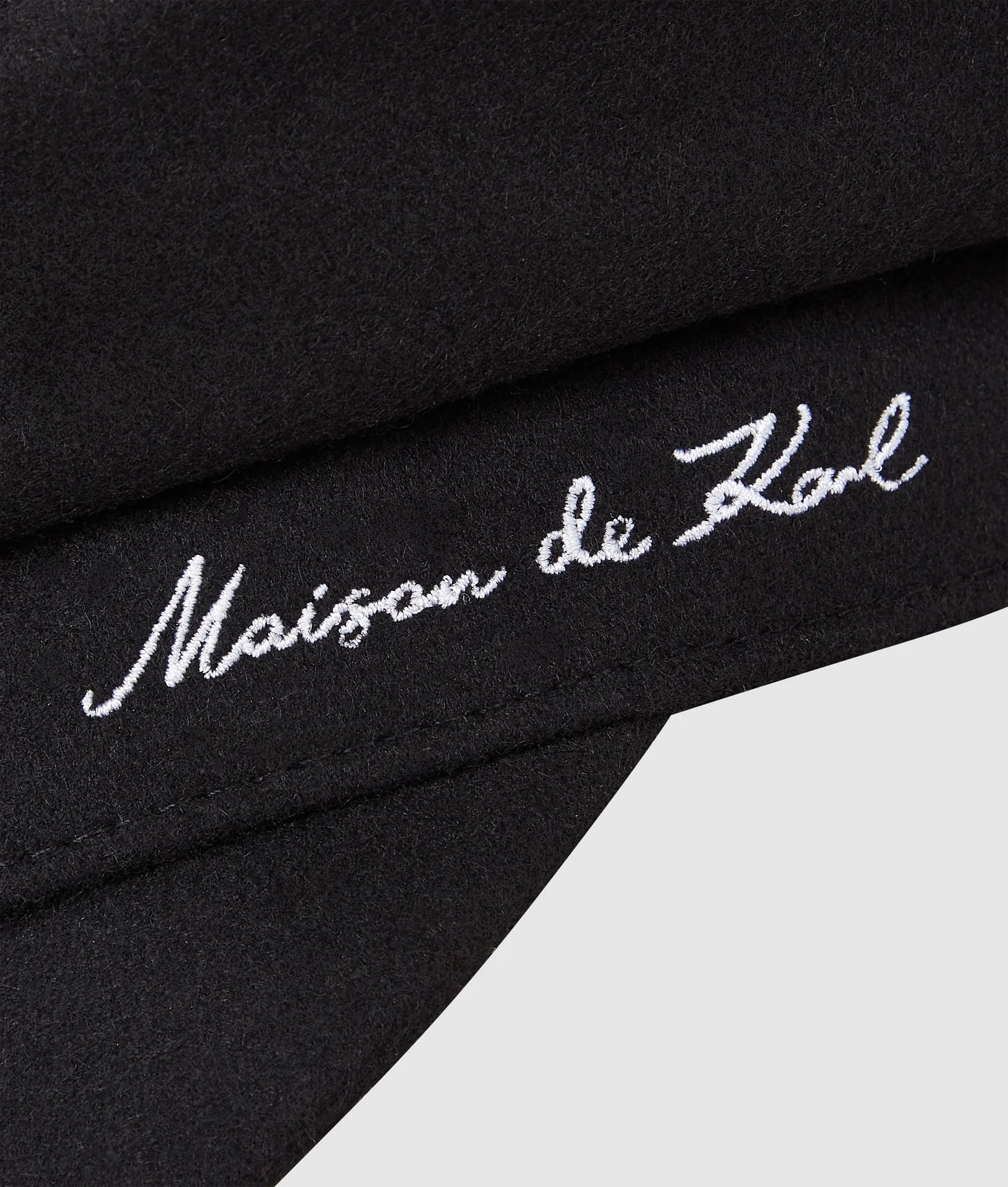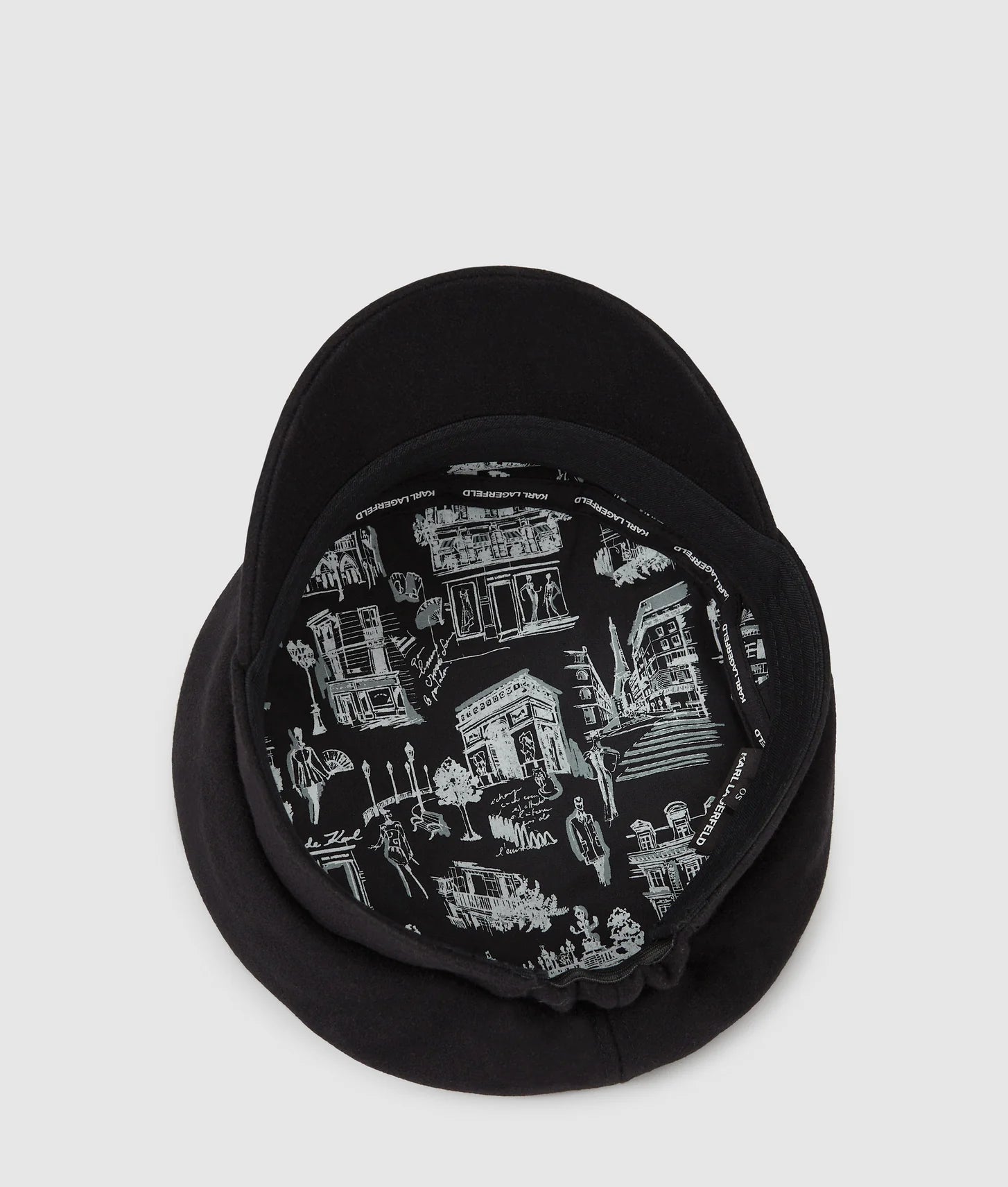 Crafted from a premium wool-blend woven fabrication, the cap delivers natural warmth, breathability, and durability—perfect for year-round wear. A subtle Maison de Karl embroidery at the side lends signature branding without overpowering the clean design. Inside, the cap reveals a thoughtful detail: an all-over Paris illustrations print lining, celebrating the brand’s iconic roots and adding an unexpected touch of character and luxury.
