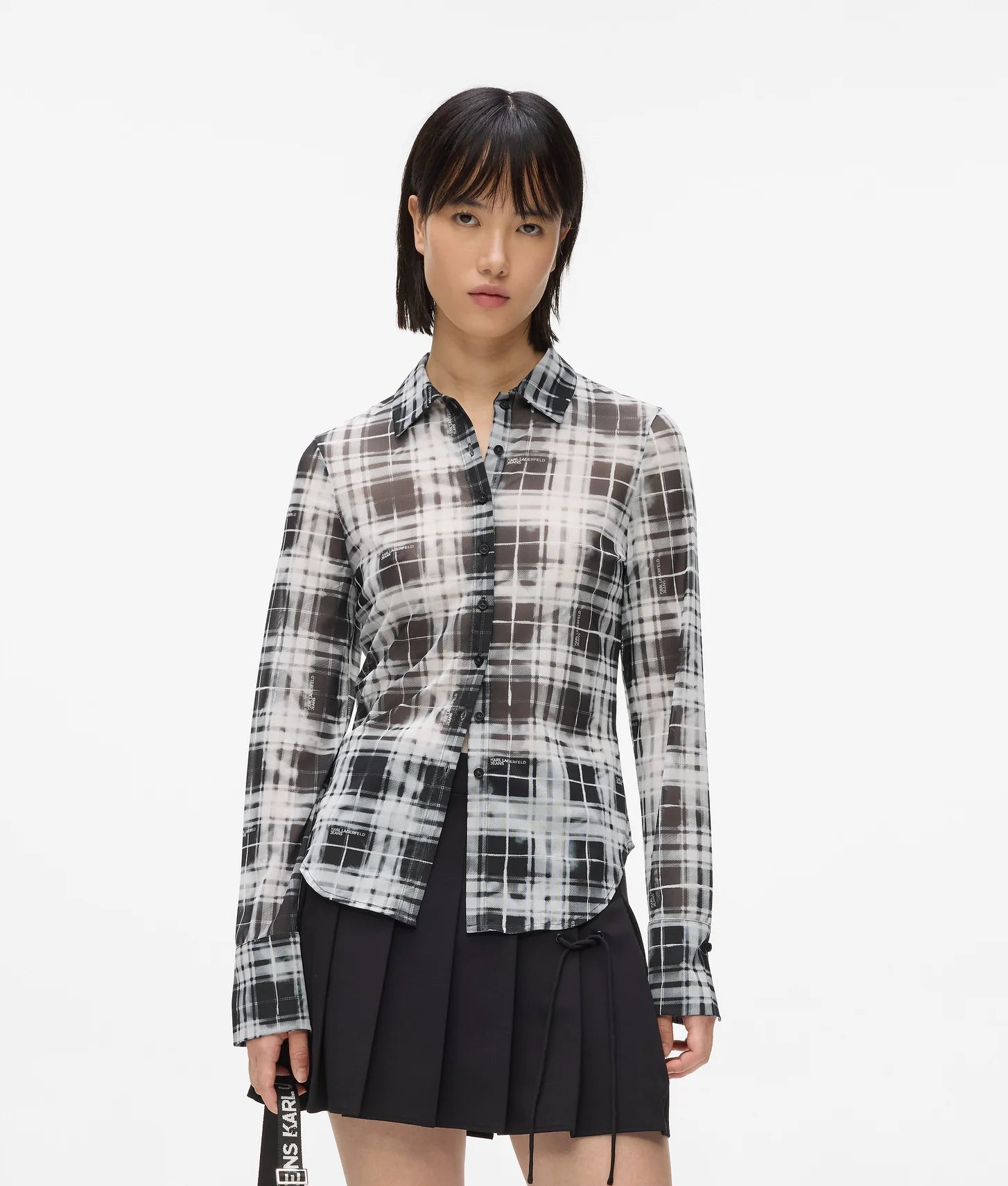 Bold, modern, and effortlessly versatile, the Checked Mesh Shirt from KARL LAGERFELD JEANS is designed to make a confident style statement. Crafted from lightweight sheer mesh, this piece balances transparency with structure, creating a look that is both edgy and refined. The striking check pattern is interwoven with the iconic KARL LAGERFELD JEANS logo, adding depth and unmistakable brand identity.