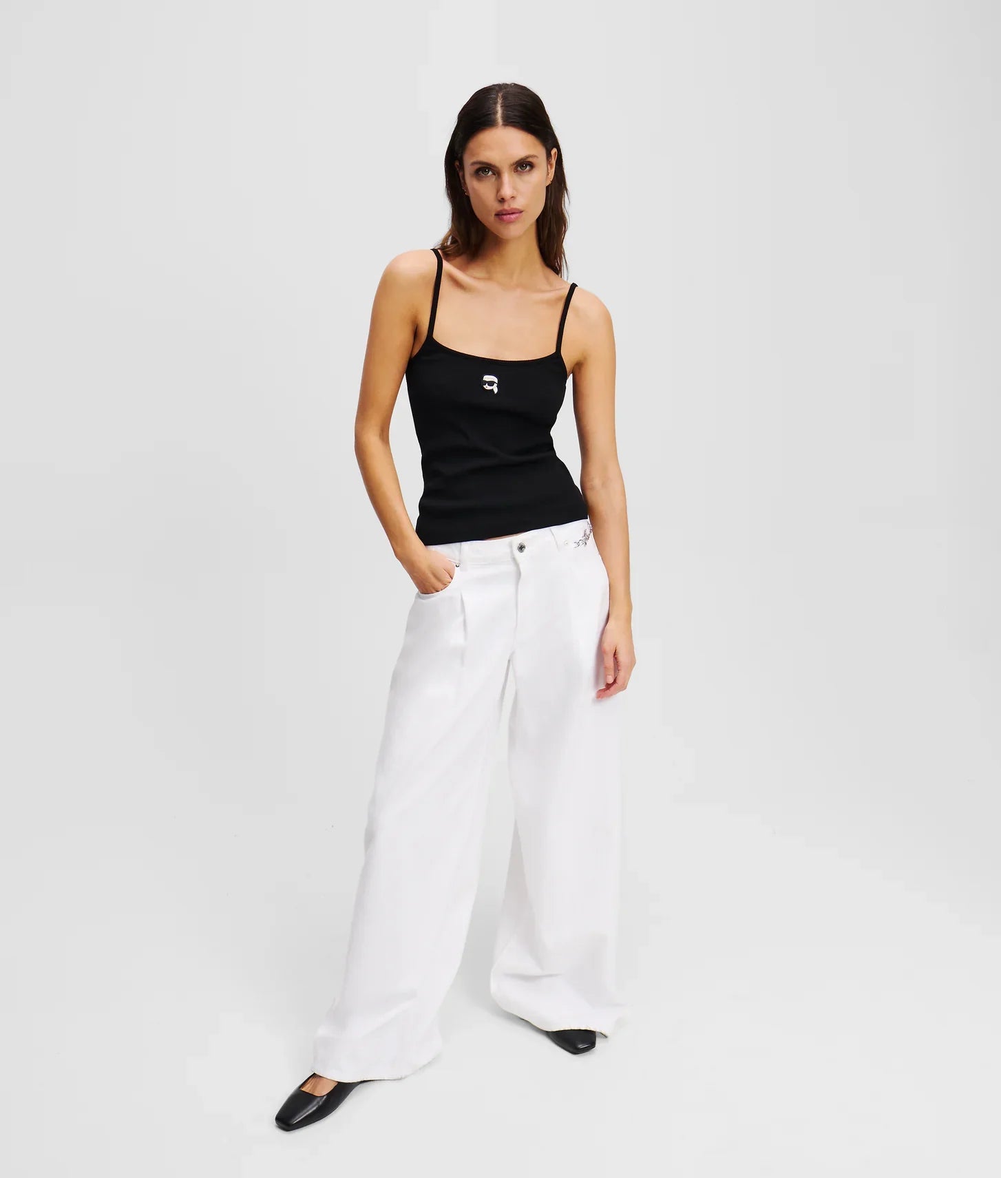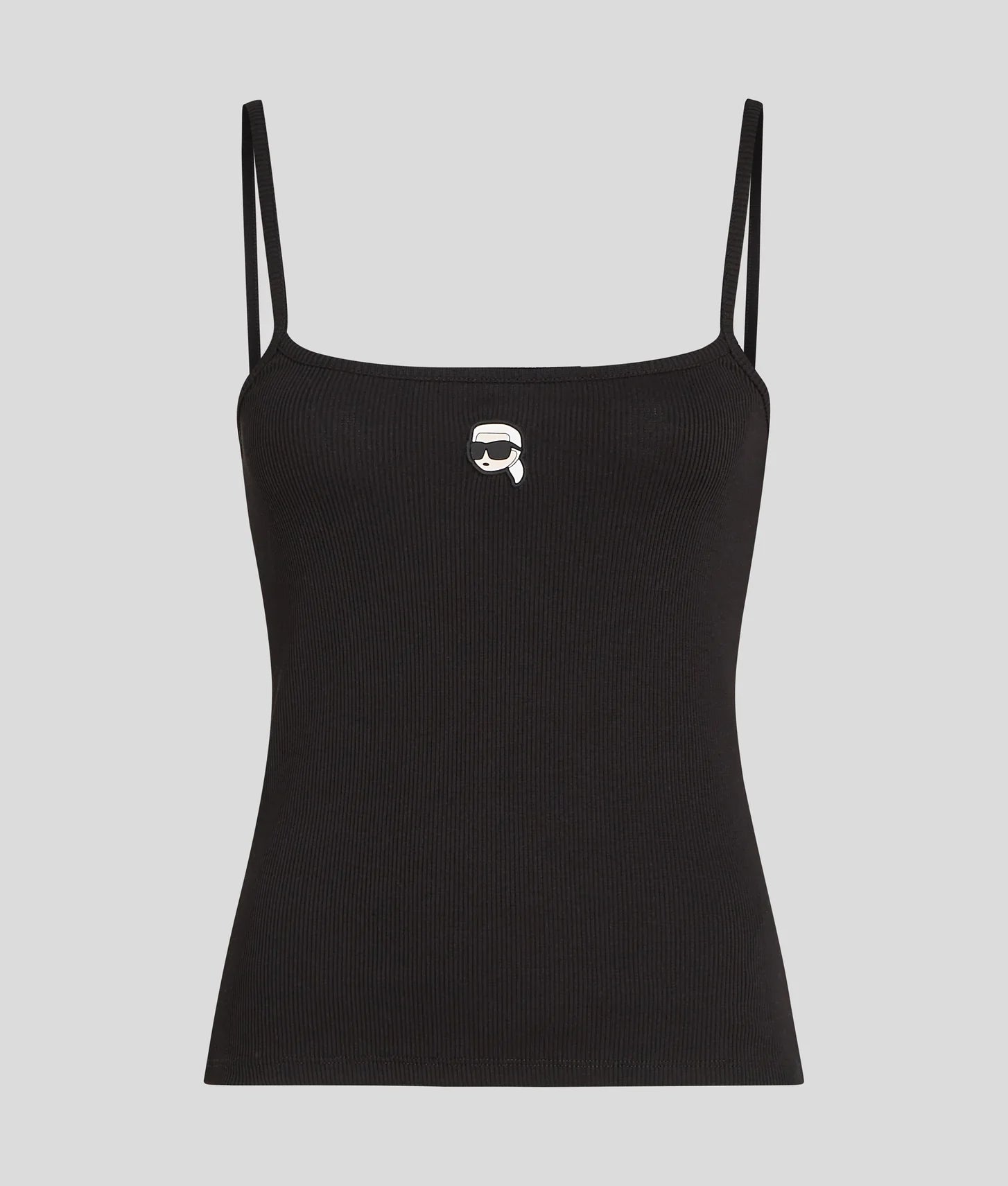 The chic square neckline brings a contemporary edge, framing the décolletage with clean lines, while slim shoulder straps enhance the refined, streamlined look. At the front, the IKON Karl patch adds a playful yet unmistakably iconic signature, elevating this essential piece with subtle character.