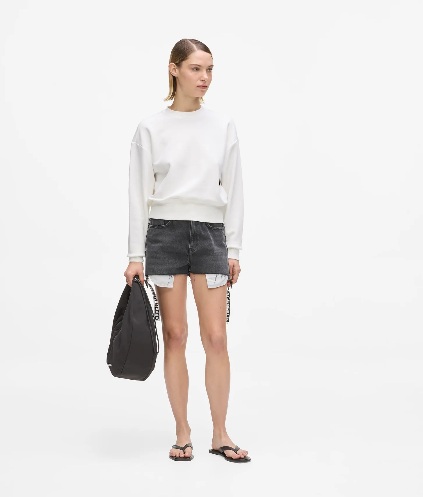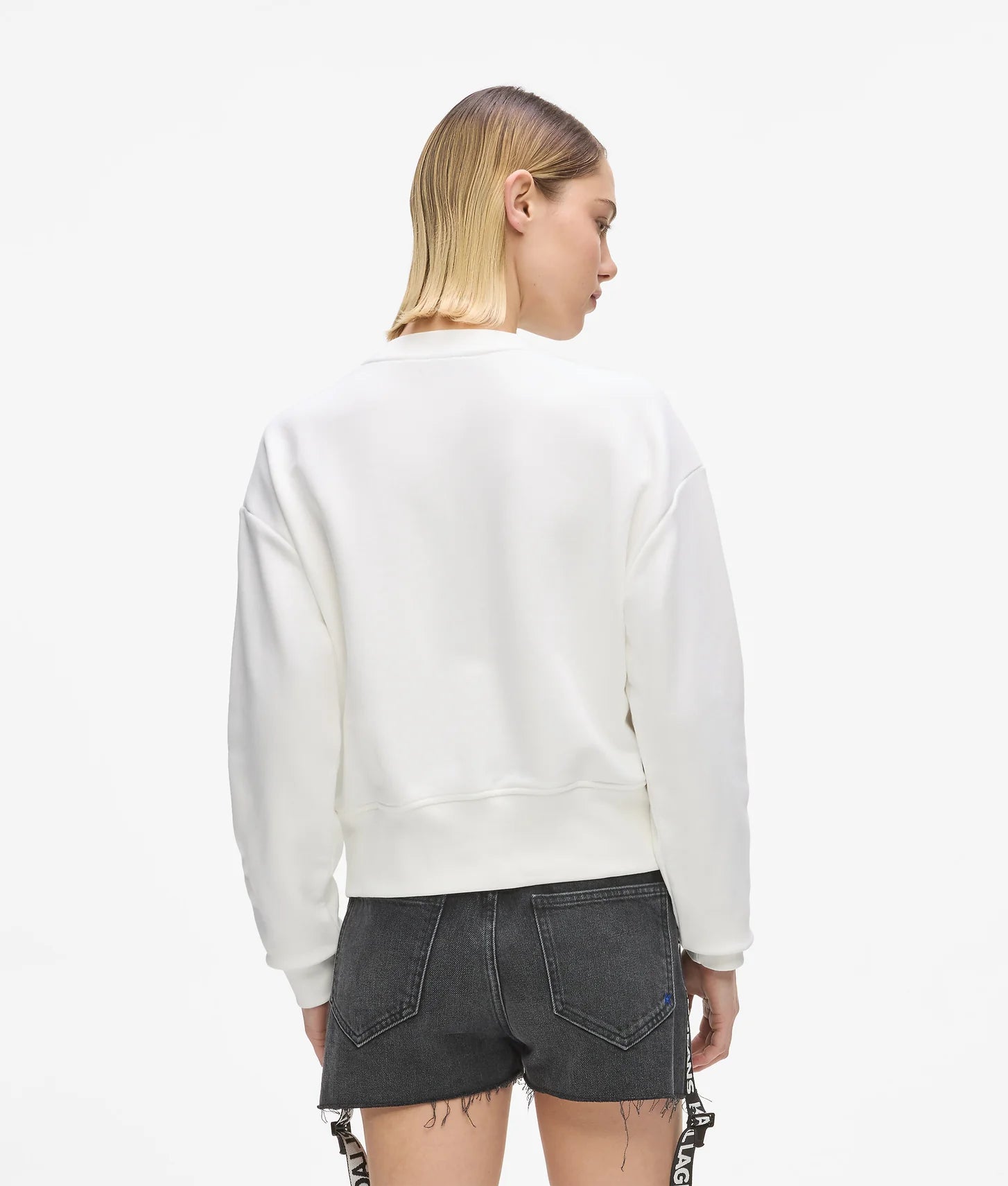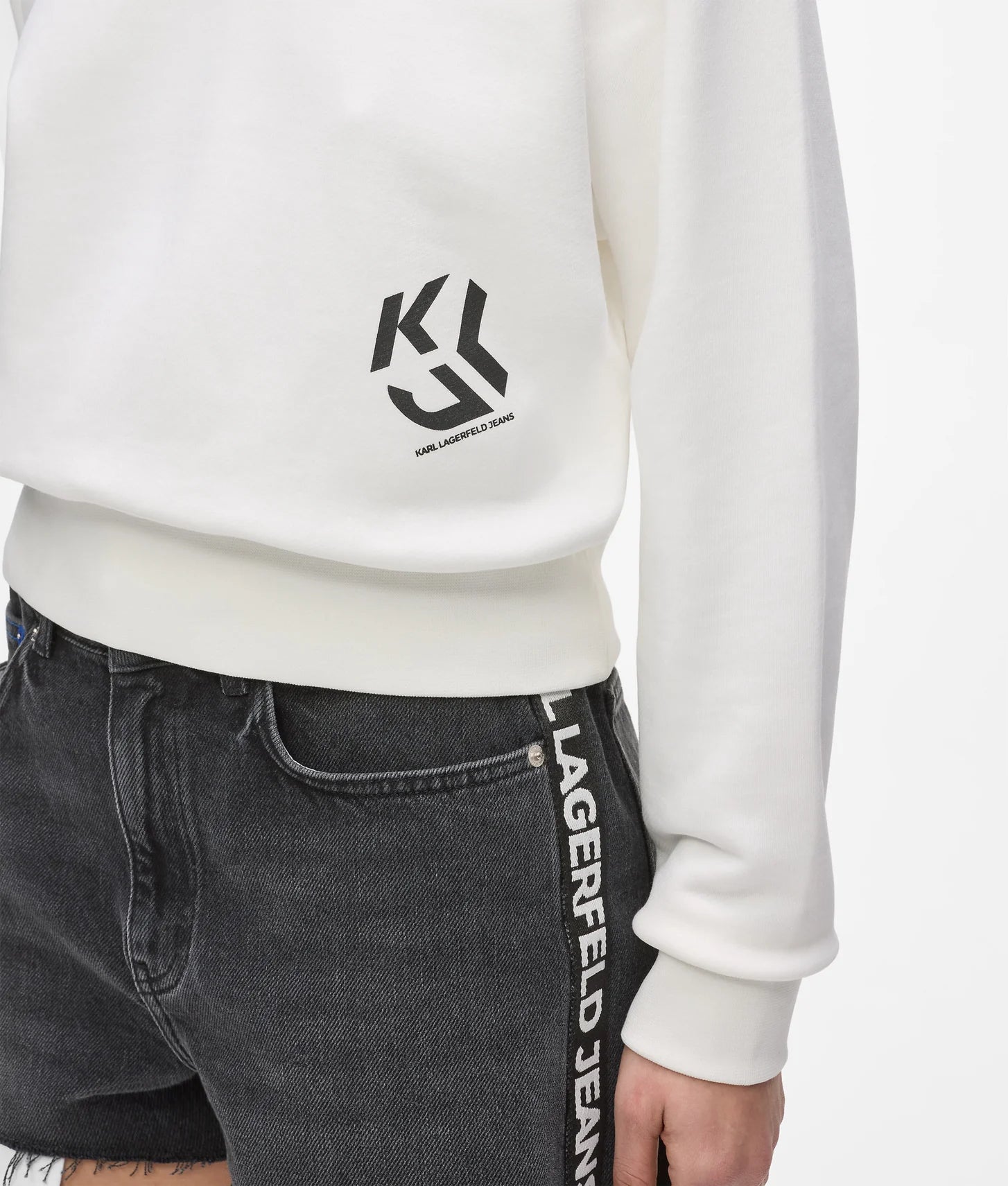 Designed with a classic crew-neck silhouette, it features light ribbing at the collar, cuffs, and hem, providing subtle texture, enhanced shape retention, and a relaxed yet polished look. The standout element is the KARL LAGERFELD JEANS monogram positioned on the left side, offering a bold, designer-inspired statement that elevates a wardrobe essential into a fashion-forward piece.