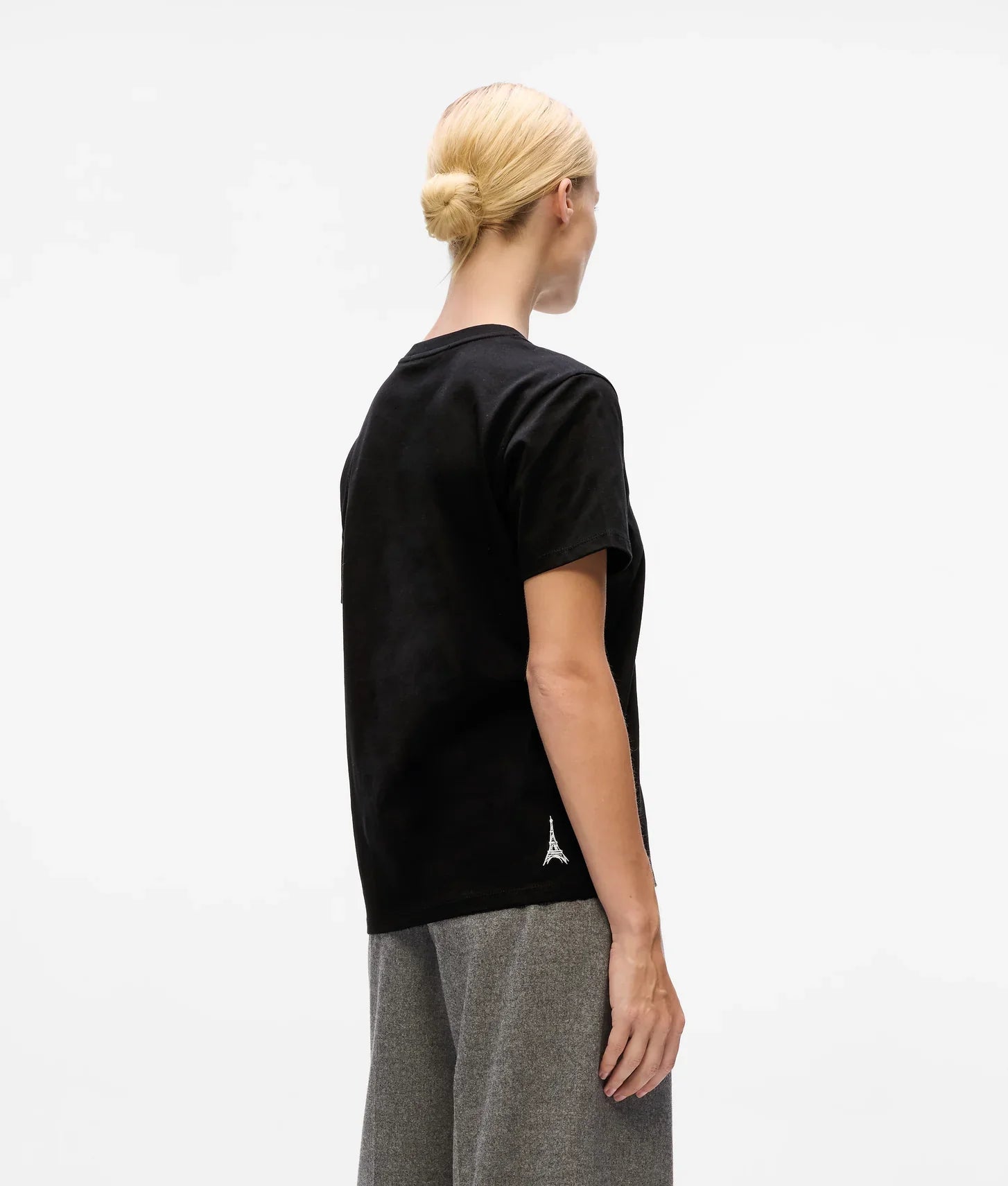 Small Eiffel Tower emblem at the back hem for subtle detailing