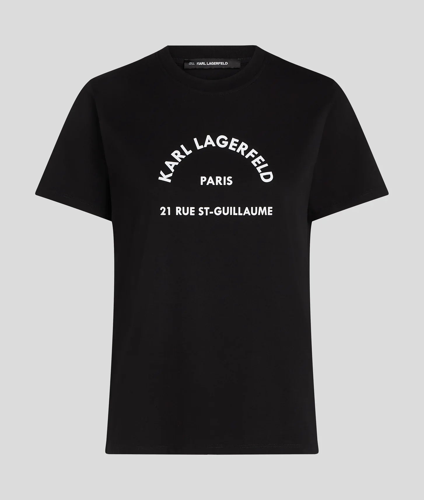 Designed with a classic crew neck and short sleeves, the clean lines provide the perfect canvas for the striking Rue St-Guillaume artwork at the center front. This iconic graphic introduces unexpected impact to an otherwise understated design, making the piece both versatile and instantly recognizable.