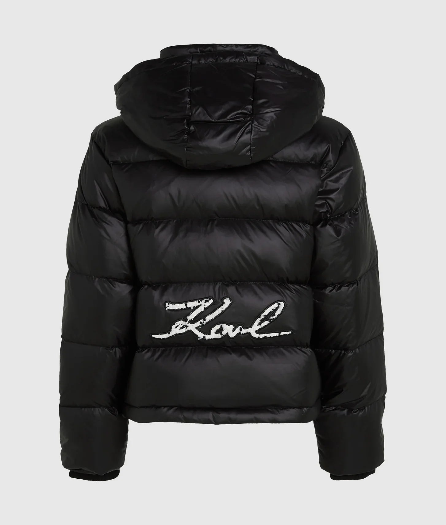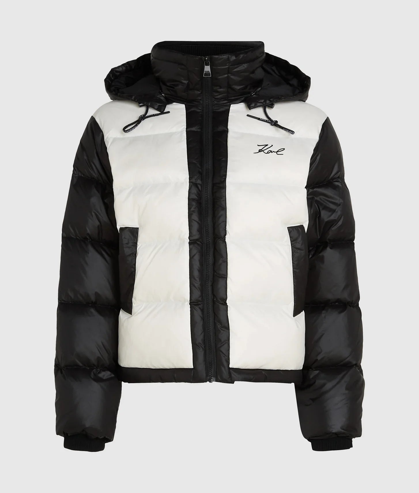 Designed for versatility, the jacket features a detachable hood and an adjustable elastic cord at the hem, allowing you to customize the fit for a tailored silhouette. Subtle yet striking branding elevates the design: Karl Signature embroidery on the front chest and bouclé embroidery at the back showcase attention to detail and unmistakable designer style.