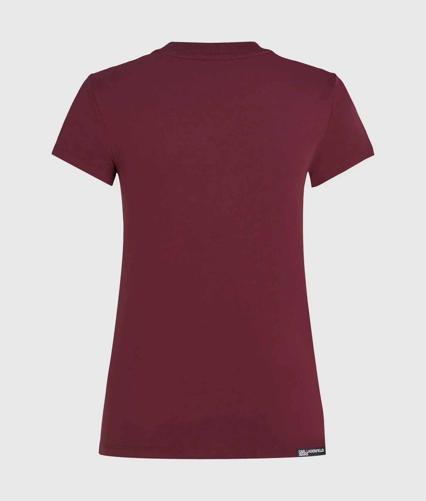 Crafted from 100% organic cotton, the soft jersey fabric ensures breathability and a smooth feel against the skin. A ribbed crew neck adds structure and a classic touch, while short sleeves keep the look clean and versatile. The iconic KARL LAGERFELD JEANS logo at the left chest adds a subtle, signature detail, reflecting the brand’s heritage and modern edge.