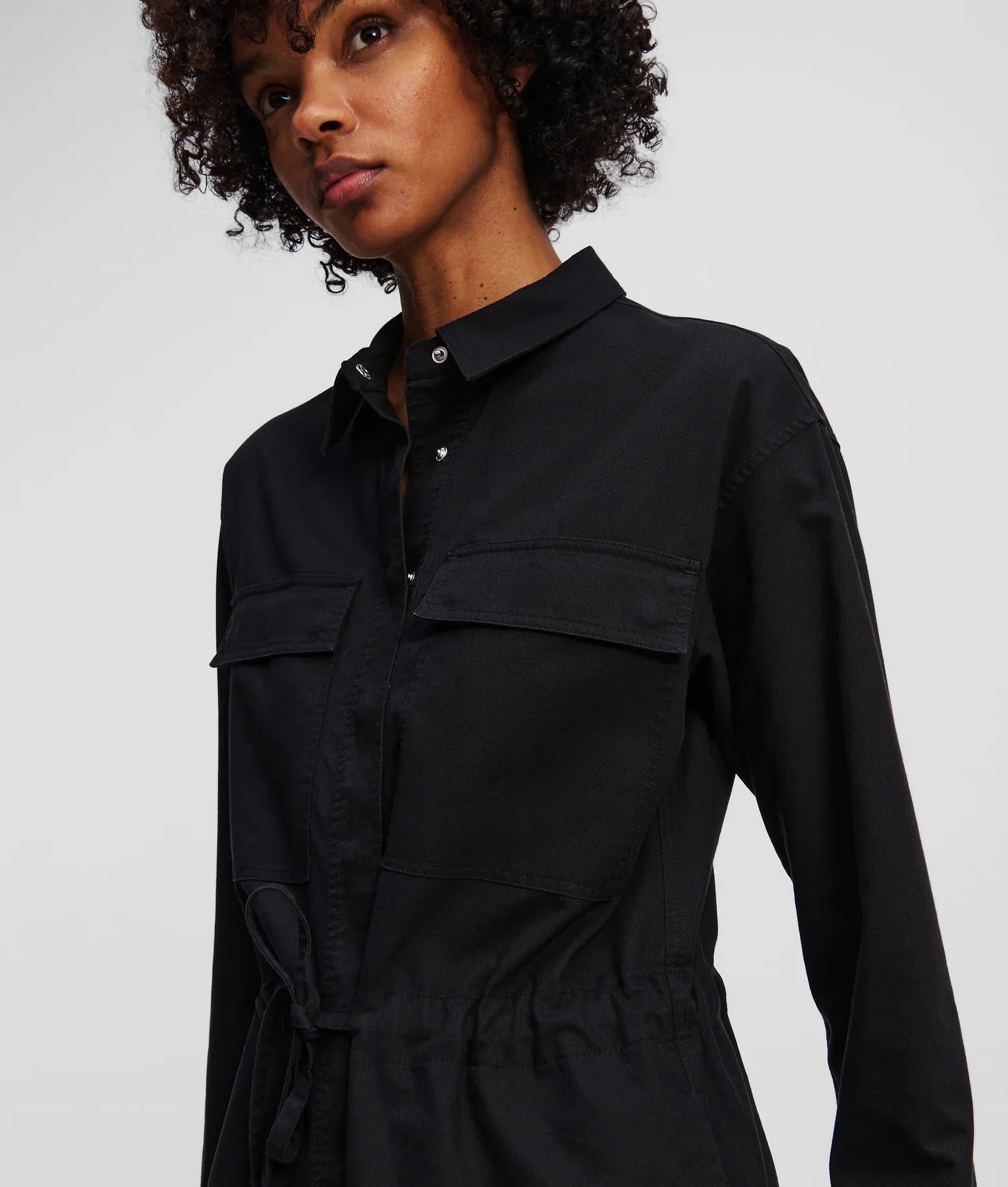 UTILITY SHIRT DRESS — WORKWEAR ATTITUDE WITH STREET-READY REFINEMENT