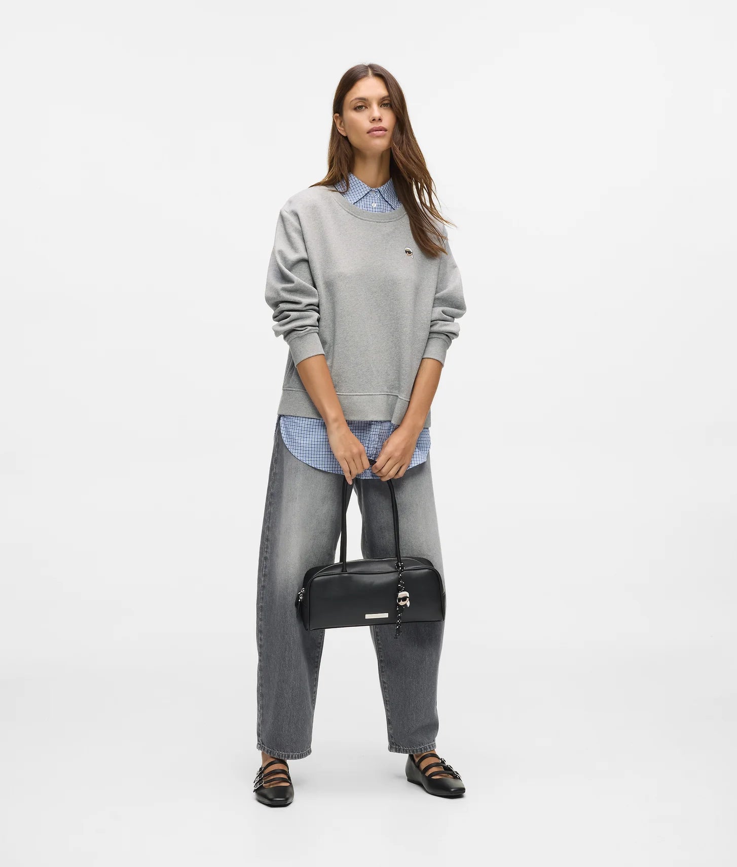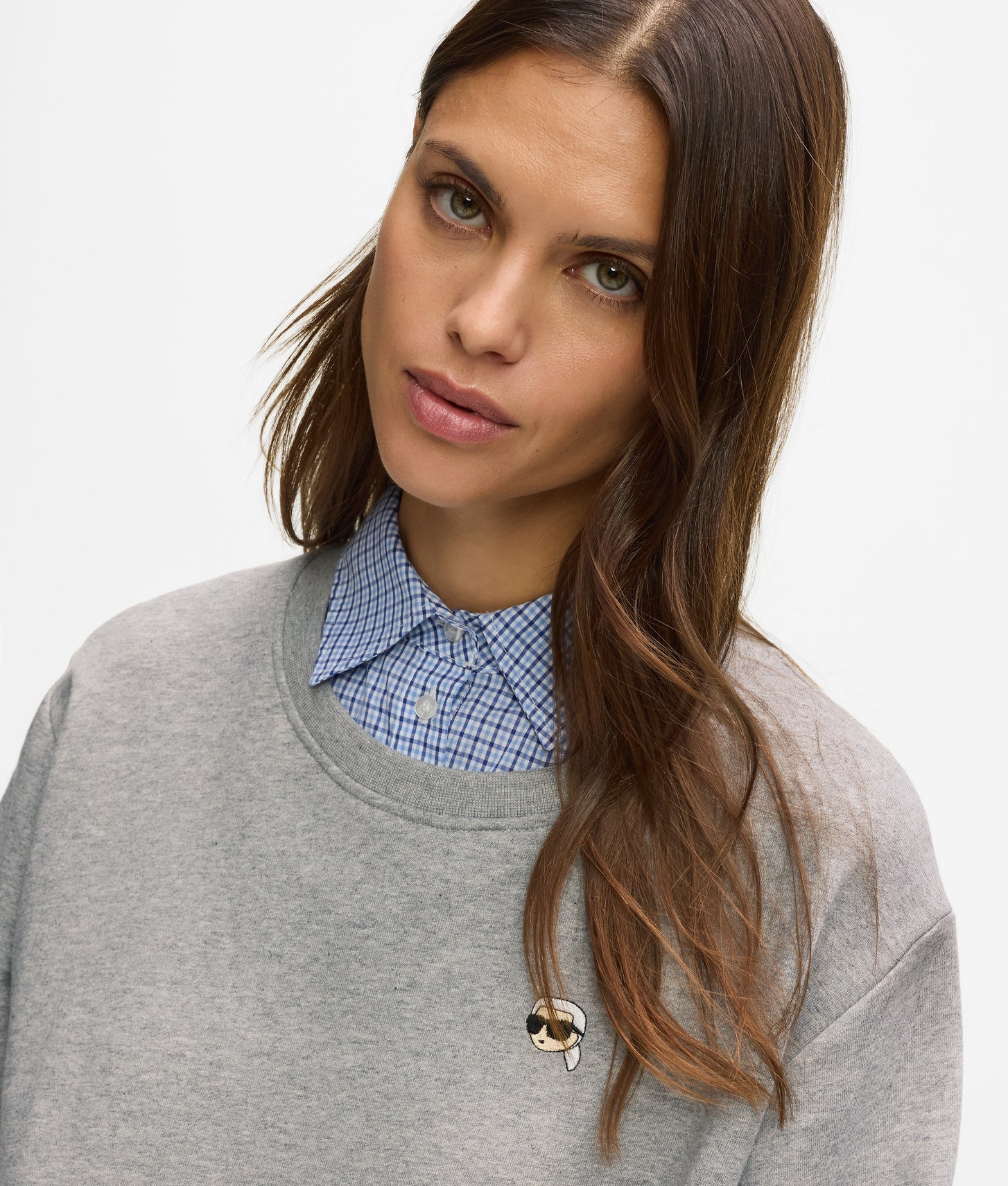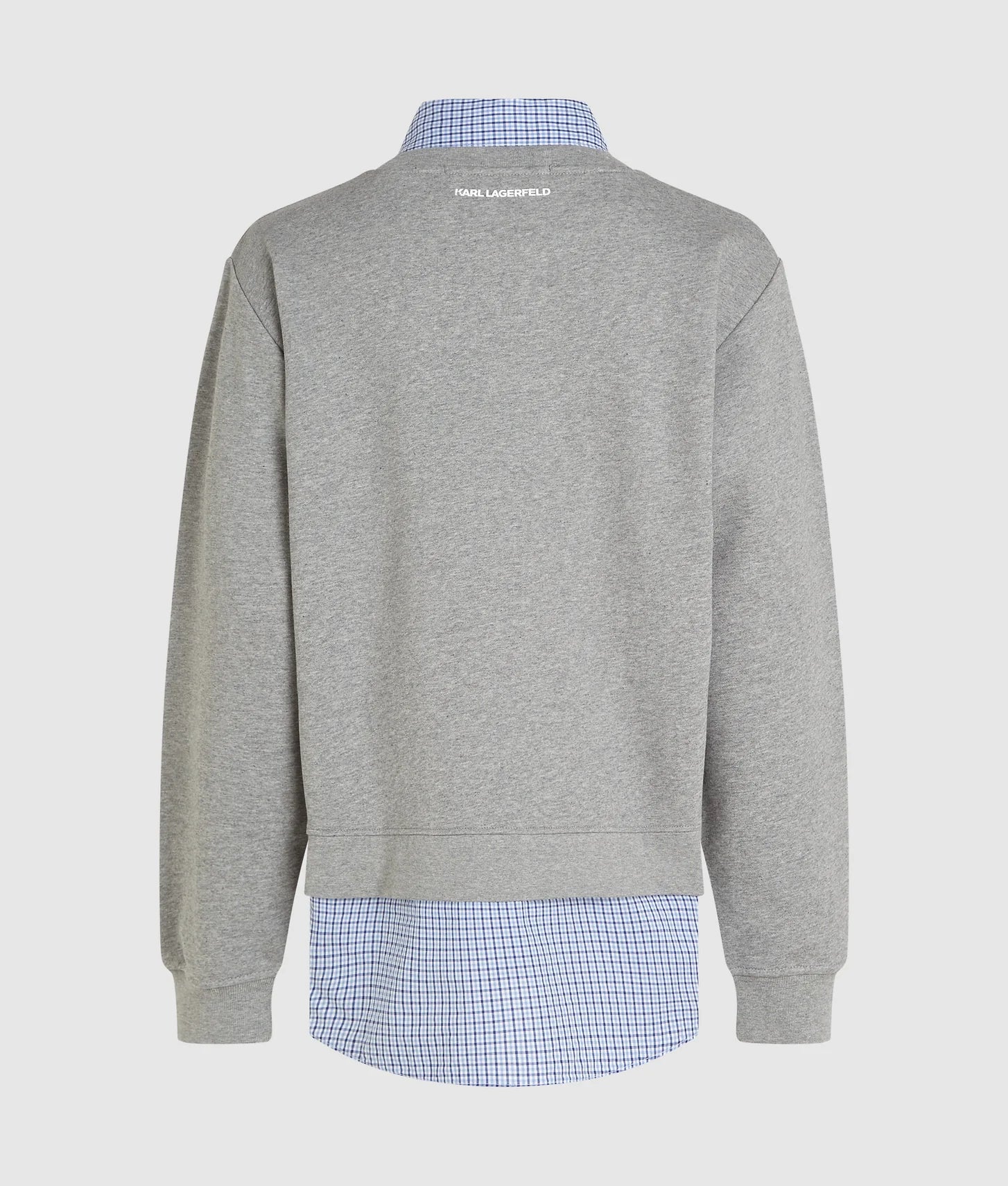 Crafted from soft cotton jersey with a hint of stretch, the sweatshirt features a built-in inner checked shirt, creating the illusion of a perfectly layered outfit in one streamlined design. The regular fit ensures comfortable, easy wear, making it ideal for relaxed days while still looking refined. Adding a signature touch, the embroidered Ikon Karl artwork patch brings playful character to the front, while the KARL LAGERFELD logo at the back completes the look with subtle branding.