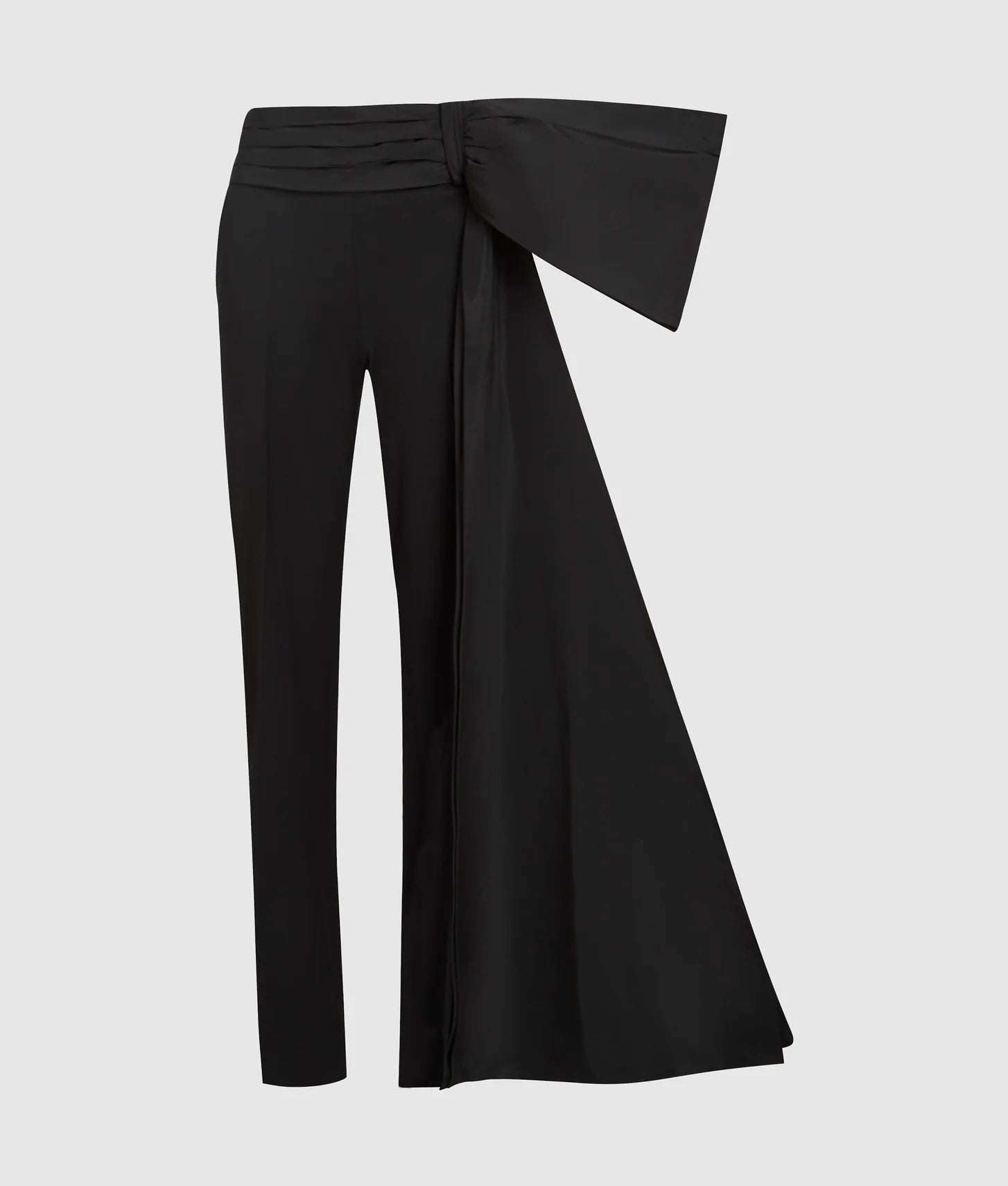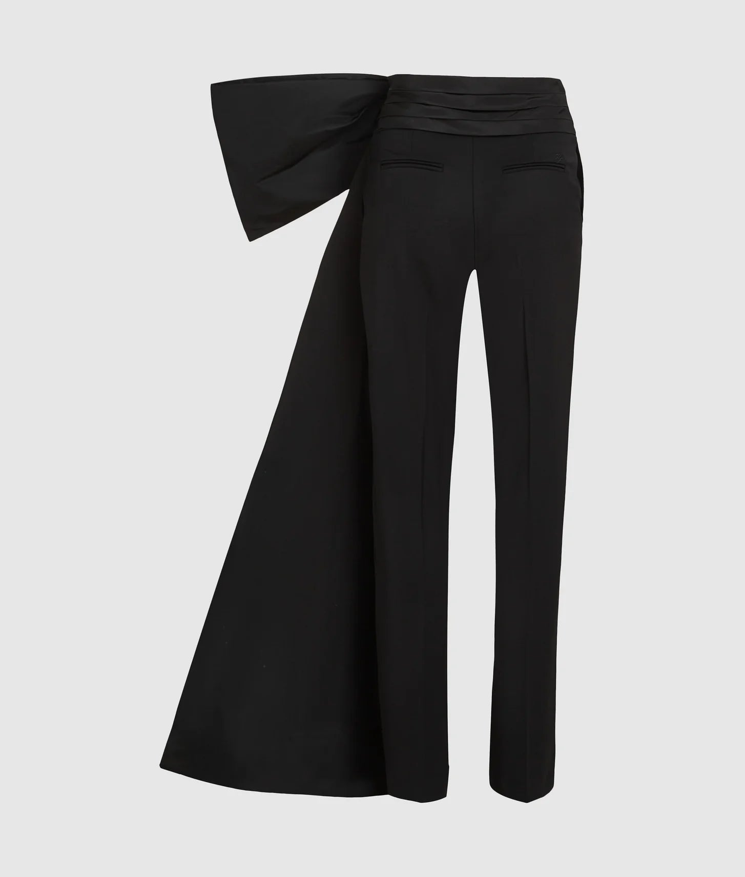The pants feature a straight-leg silhouette in a soft, structured wool-blend fabric, offering comfort and durability while maintaining a refined shape. A deep pleated waistband adds dimension and ensures a flattering fit at the waist, while the oversized voluminous taffeta bow on the left hip creates a striking focal point, delivering a dramatic, editorial-ready effect. Subtle tonal Autograph logo embroidery at the back welt pocket completes the design with a refined branded touch.