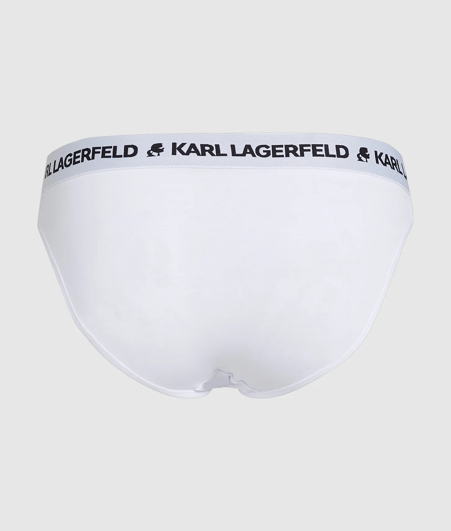 The low-rise silhouette sits smoothly under clothing, creating a flattering and seamless look, while the elasticated waistband ensures a secure and comfortable fit. A contrasting KARL LAGERFELD logo at the waistband adds a bold, designer touch, elevating these practical underwear basics into a statement piece.